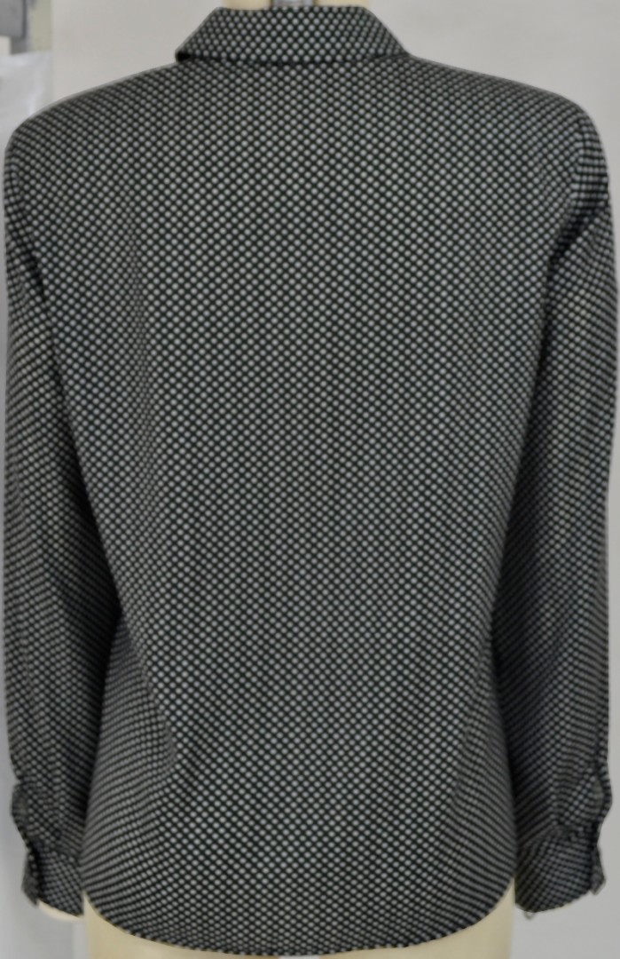 Dieses aktuelle 1/1 Arm Bluse wurde in schwarz-weiß allover gemustert designed und kann auch aus "Trauerbluse" leicht zu kombinieren getragen werden