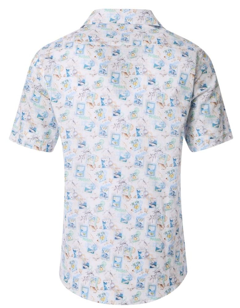 Das sportive Hemd mit 1/2 Arm sowie sportivem Kragen wurde mit einem interessantem Briefmarken - Print designt und aus 100 % edler Baumwolle gefertigt. Einfach perfekt für die warme Jahreszeit mit legerer Schnittführung und leicht verkürzter Länge