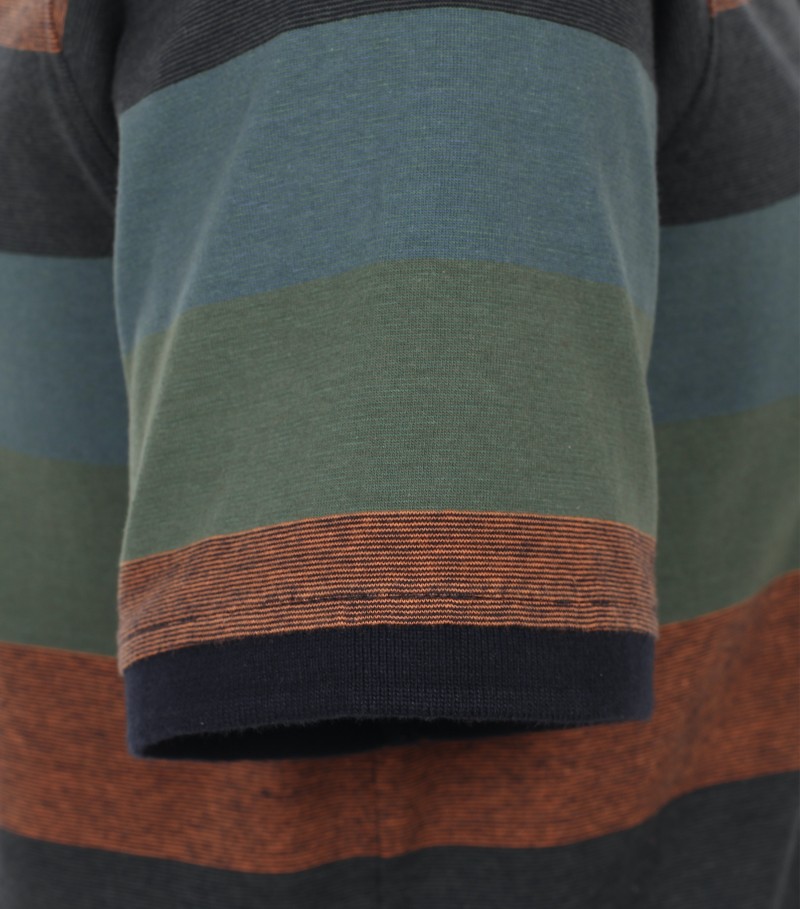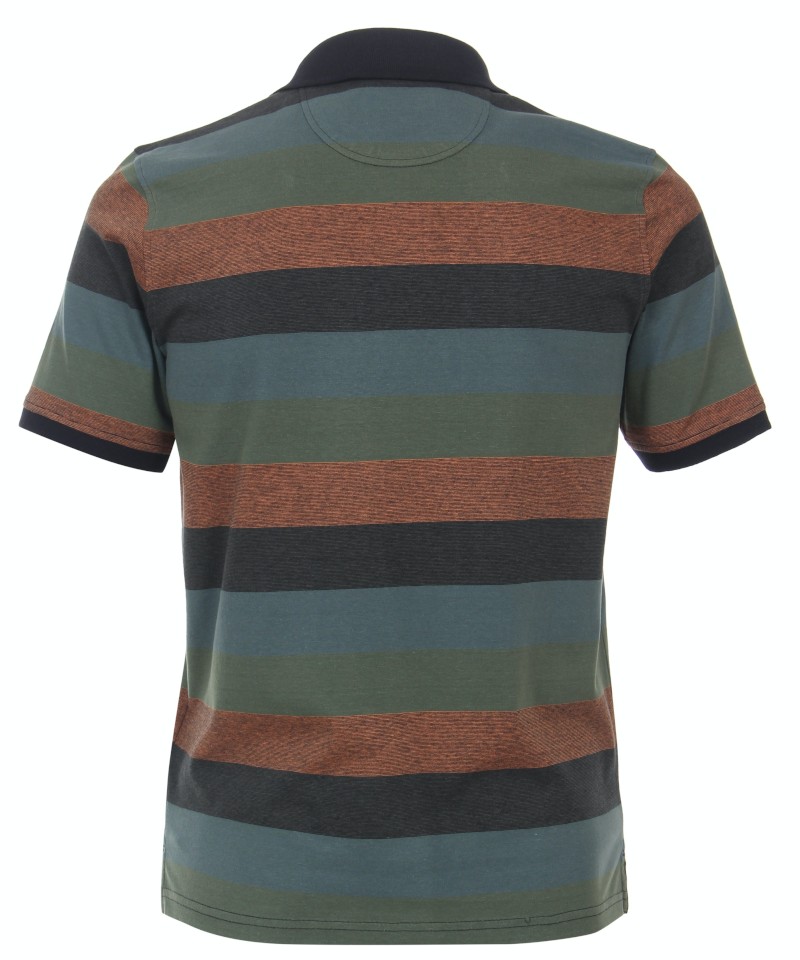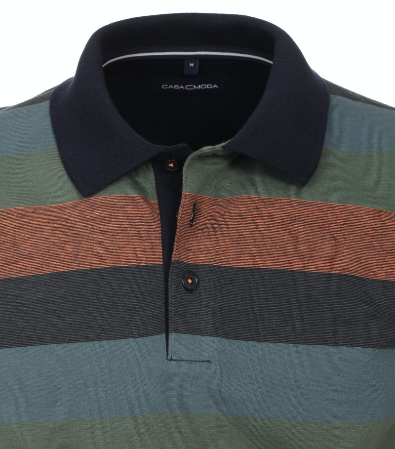 Dieses hochwertige und lässige Polo Shirt wurde in mehrfarig mit oliv geringelt designt. in CASUAL FIT also normal geschnitten lässt sich dieses Shirt immer einfach kombinieren