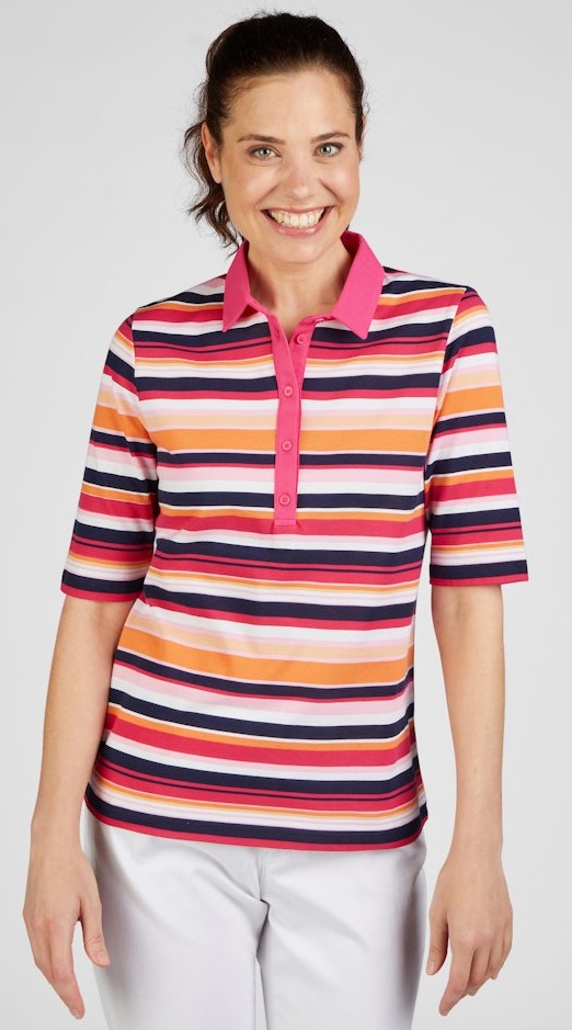 1/2 Arm Polo Shirt in mehrfarbig mit magenta geringelt