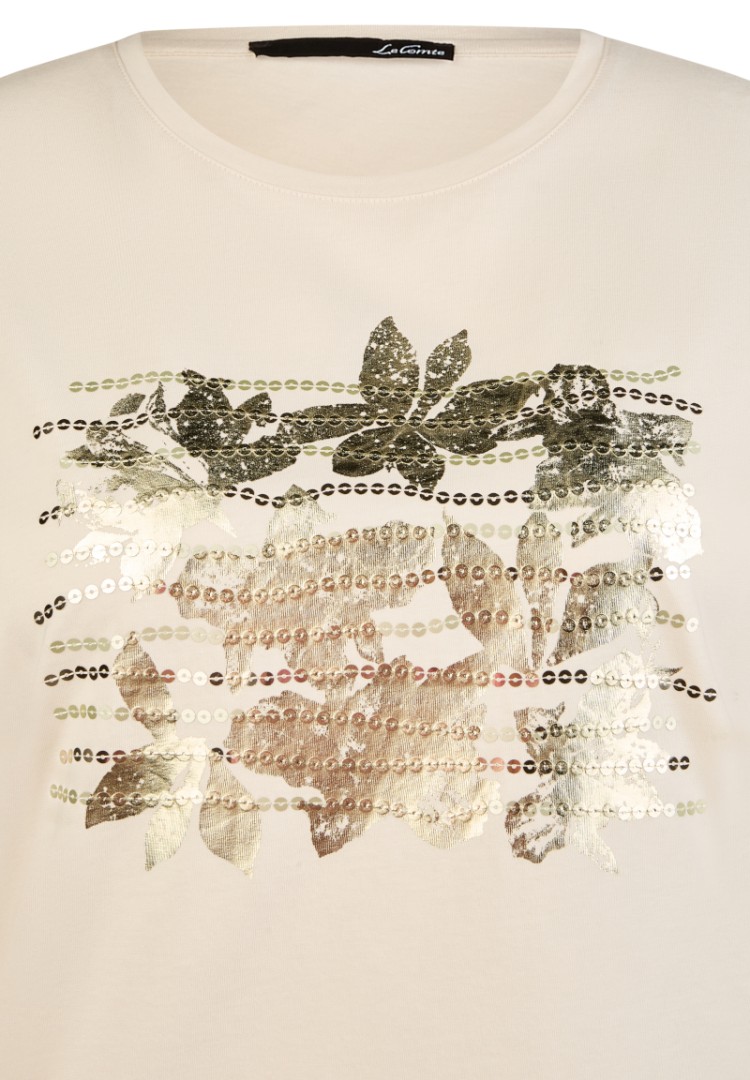 Ein Shirt zum verlieben - in elfenbei mit rundem Ausschnitt und 1/2 Arm. Der romantische Print sowie die edlen Pailletten machen dieses Shirt aus 100 % Baumwolle zum echten Hingucker