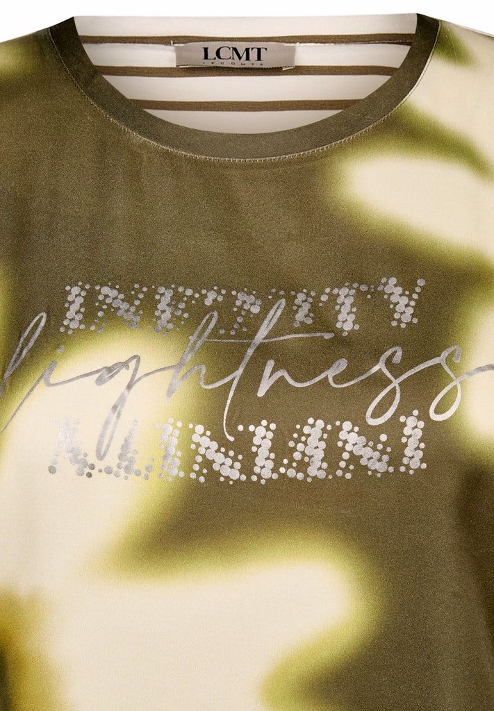 Ein Shirt zum verlieben - in mehrfarbig mit olive sowie rundem Ausschnitt und überschnittenem Arm. Auch der dezent glänzende Print verleiht diesem edlen Shirt einen besonderen Touch