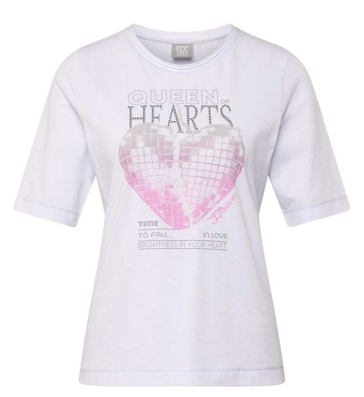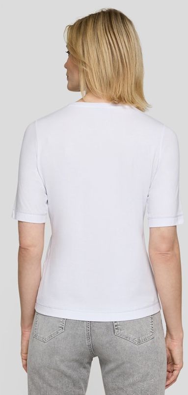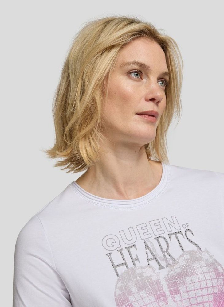 Ein 1/2 Arm Shirt das mit Wording und geschmücktem runden Ausschnitt in weiß designt wurde