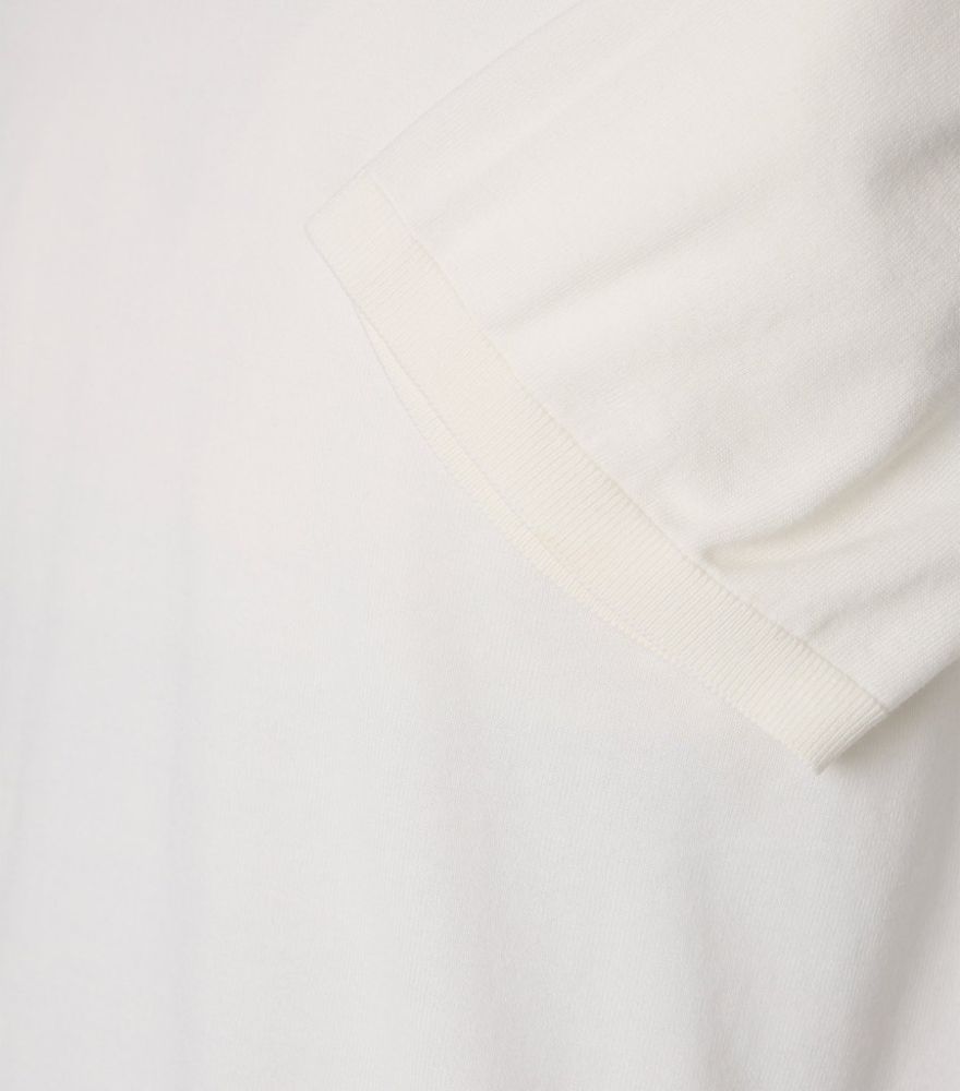 Dieses gestrickte und deshalb etwas dickere T-Shirt in hartweiß wurde wie ein klassisches T-Shirt mit rundem Ausschnitt und 1/2 Arm designt und gehörte den Highlights der Saison