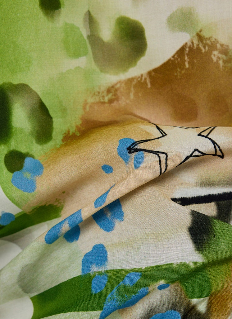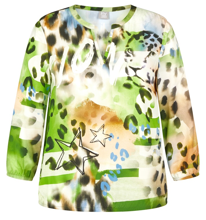 Dieses leicht fließende Shirt mit 3/4 Arm gehört zu den Highlights der Saison. In mehrfarbig gemustert sowie mit geschlitztem runden Ausschnitt lässt sich dieses Shirt immer leicht kombinieren