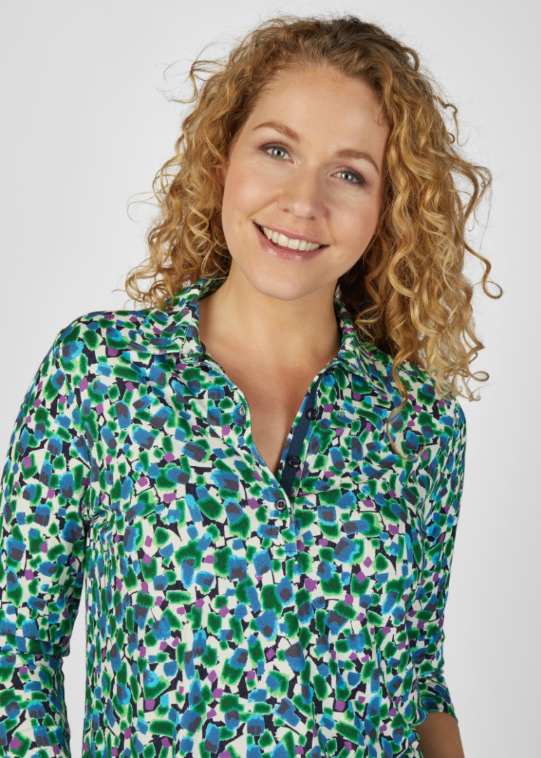Produktinformationen "3/4 Arm Polo Shirt in allover mit kiwi-grün gemustert"