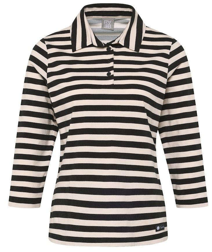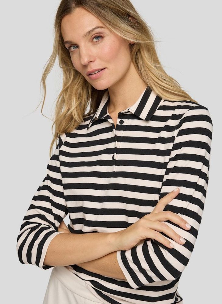 Produktinformationen "3/4 Arm Polo Shirt in geringelt mit Alabaster"