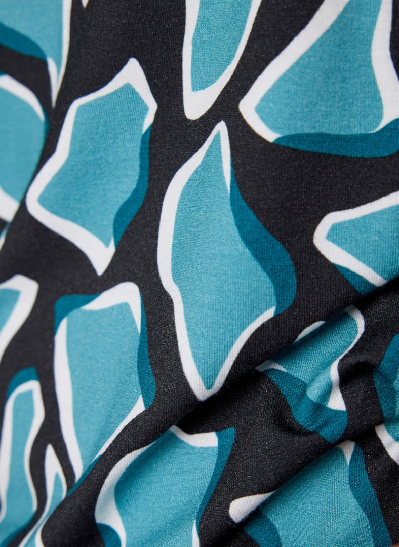 Das angehnem zu tragende Shirt wurde mit apstraktem Print in Grau-Blau sowie rundem Ausschnitt und 3/4 Arm designt. Egal ob für den Alltag oder das Büro _ Dieses Shirt lässt sich immer leicht kombinieren