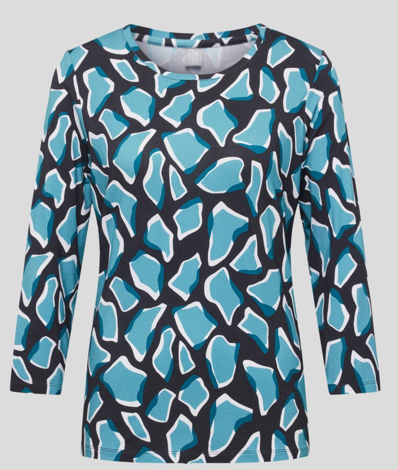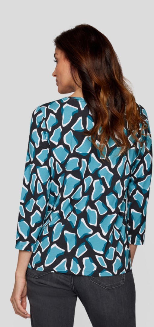 3/4 Arm Shirt mit abstraktem Print in grau-blau