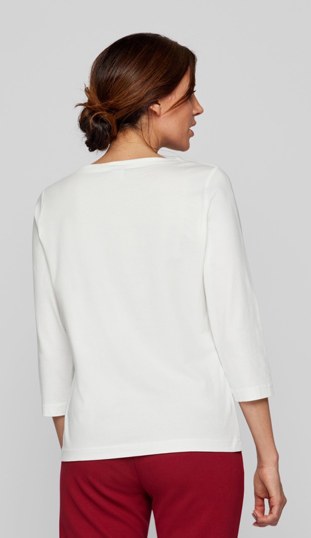 Dieses edle Shirt mit 3/4 Arm wurde mit rundem Ausschnitt in ecrue mit modischem Print versehen und lässt sich immer prima kombinieren