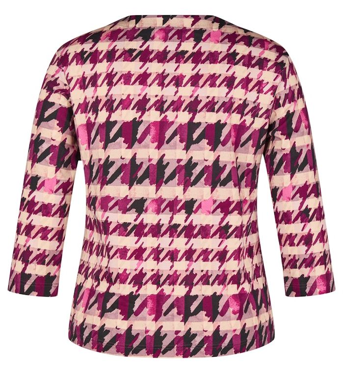Auch dieses leicht fließende sportiv-lässige Shirt aus 100 % Baumwolle in mehrfarbig mit pflaume gemustert sowie mit rundem Ausschnitt und 3/4 Arm lässt sich immer leicht kombinieren