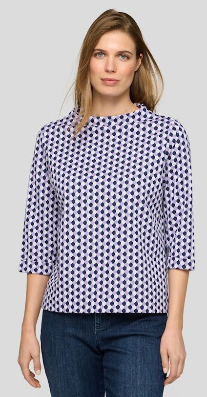 Dieses edle Shirt mit 3/4 Arm gehört zu den Highlights der Saison. Etwas dicker gestrickt sowie mit dezentem Turtle Kragen und modischem Minimal-Print in Violett lässt sich dieses Shirt immer sehr leicht kombinieren