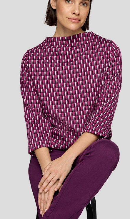 Dieses edle Shirt mit 3/4 Arm gehört zu den Highlights der Saison. Etwas dicker gestrickt sowie mit dezentem Turtle Kragen und modischem Minimal-Print in Pflaume lässt sich dieses Shirt immer sehr leicht kombinieren