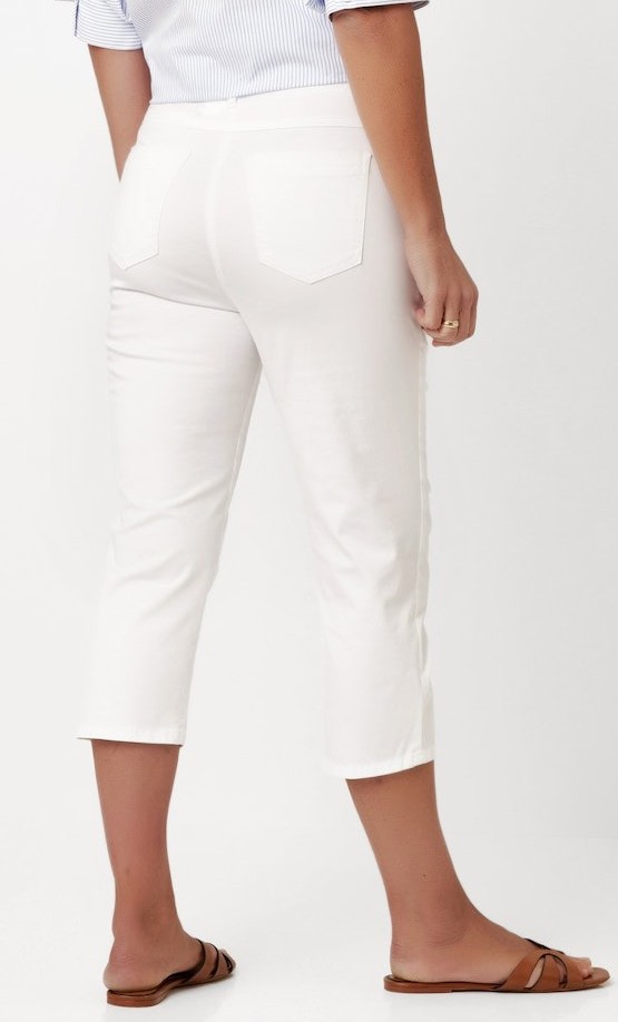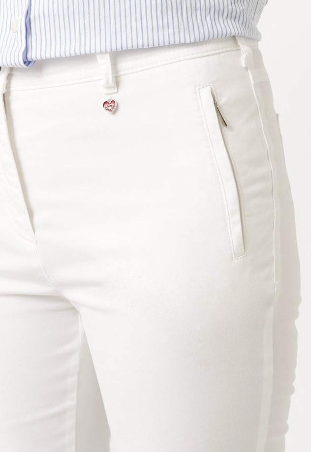 Diese 6/8 Jeans "Alice" besticht durch die angenehme Feel Free Qualtiät in weiß mit schmalen Oberschenkeln und komfortabler Taille mit höherer Leibhöhe. Der Invisible-Bund hietet zudem viel Komfort