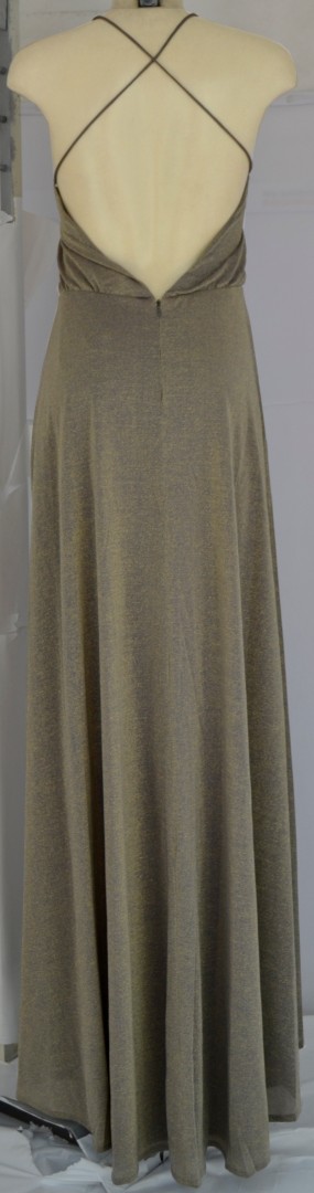 Dieses traumhaft glänzende Ballkleid wurde in grey-gold designt. Der romantische Ausschnitt sowie der Rockteil mit Schlitz vorne sowie der angedeutete Vokuhila Styl macht das Modell zum echten Highlight