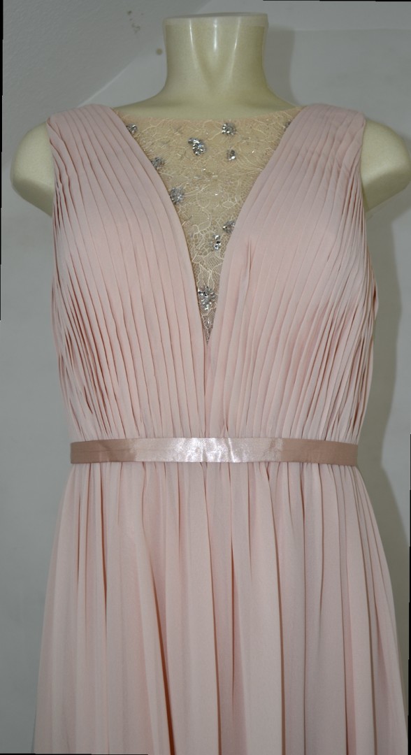 Dieses elegante lange Ballkleid in der Farbe rose blush wurde mit einem romantischen Wasserfall Kragen designt. Die leichte A-Form sowie das Taillenband aus edlem Strass in Silber garantieren Ihnen einen beonderen Auftritt für Ihren Anlass