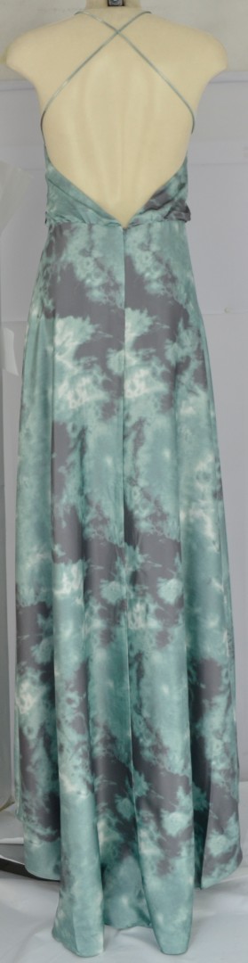 Dieses traumhafte Ballkleid im Blouson Style mit dezentem Glanz wurde in mehrfarbig dezent gemustert mit grün designt. Der romantische Ausschnitt sowie der Rockteil mit Schlitz vorne und die angedeutete Schleppe macht das Modell zum echten Hingucker