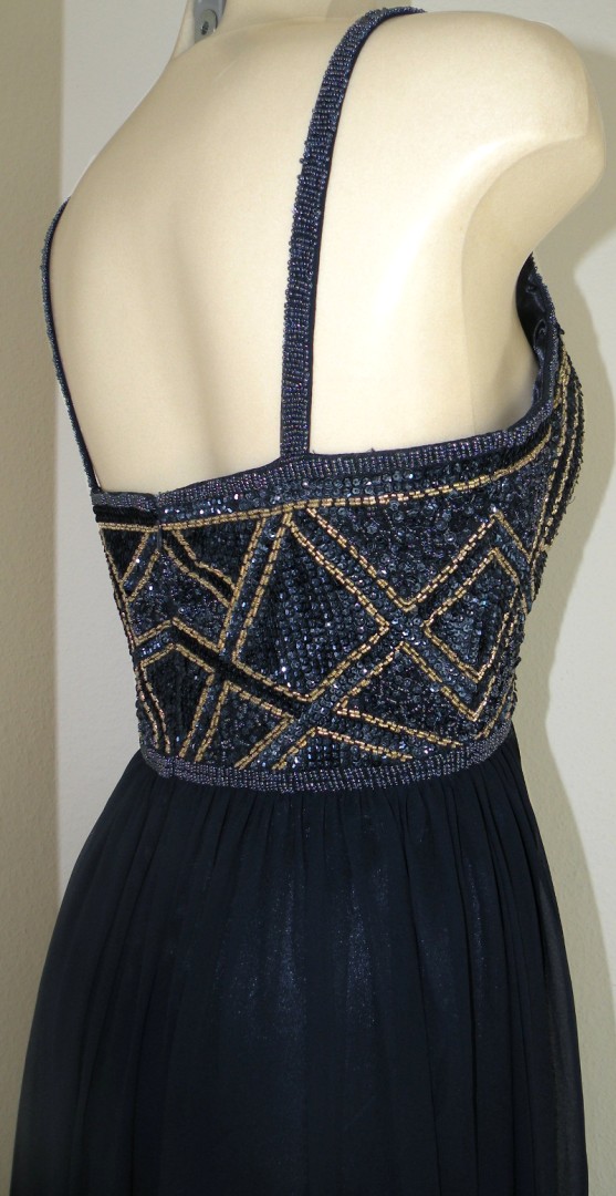 Dieses elegante Ballkleid wurde in stormy blue designt. Hier wurden das Bustier und der Rückenteil mit hochwertigen Pailletten versehen und verleihen diesem Kleid etwas ganz besonderes. Auch durch den in Falten gelegten Rockteil aus feinstem Chiffon machen Sie mit diesem Kleid immer eine sehr gute Figur