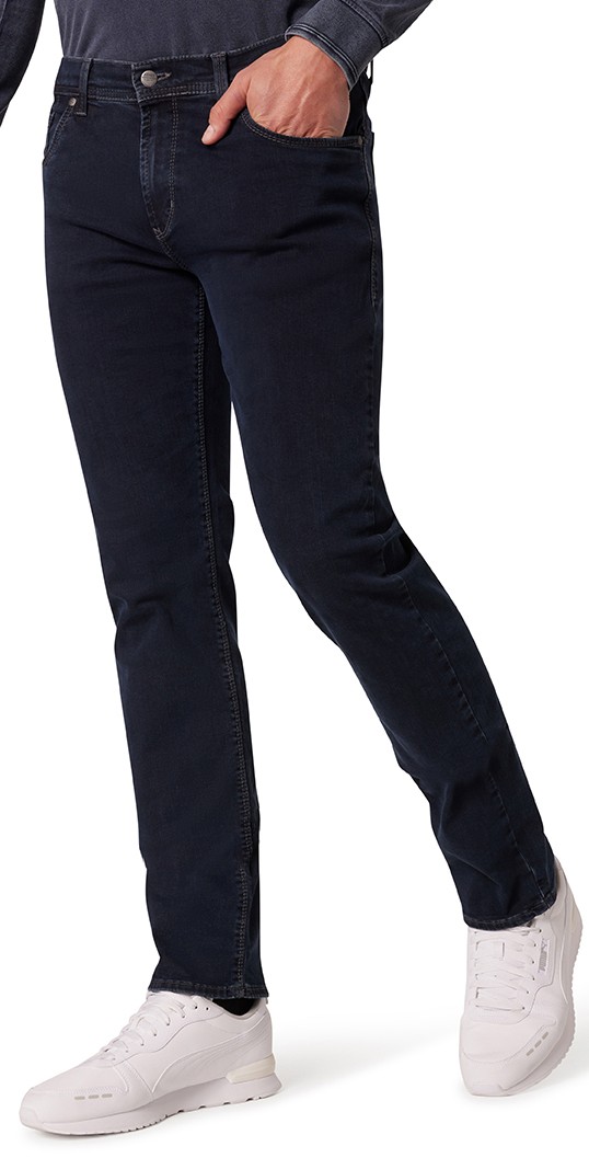 Diese FIVE POCKET Jeans mit geradem Beinverlauf und normal hoher Taille ist als REGULART Fit (nicht schmaler geschnitten) in blue/black raw (nicht used und ohne Auswaschung) designt. Als Konvex Jeans wurde bei diesem Modell der Bund vorne unter dem Bauch verkürtzt sowie hinten normal hoch geschnitten -IDEAL für große Größen! Als Megaflex Jeans ist diese Hose zudem immer passgenau und bequem
