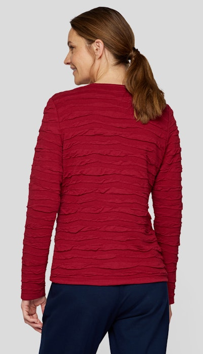 Diese sportive Jersey Blazer Jacke wurde mit R-V sowie Stehkragen und interessanter Struktur in uni granat designt und kann zu diversen Anlässen kombiniert werden