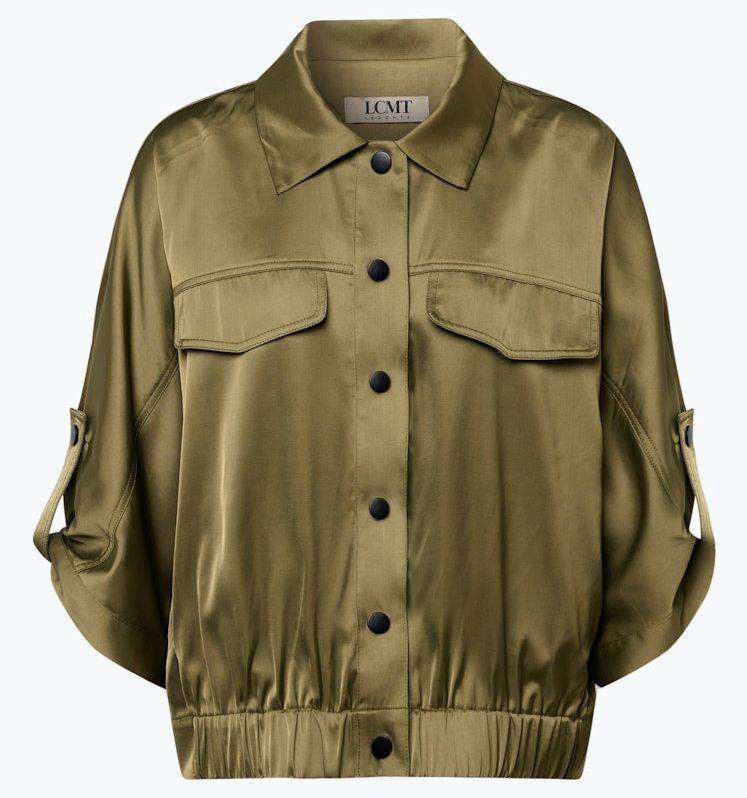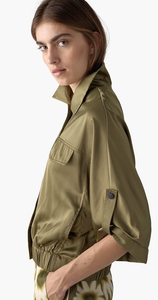 Dieser top aktuelle Blouson mit deztem Glanz wurde zum knöpfen sowie verkürzter Länge in olive designt. Auch das Bündchen - die Ärmel zum hochkrempeln sowie die zwei Brusttaschen verleihen dieser Jacke etwas besonderes