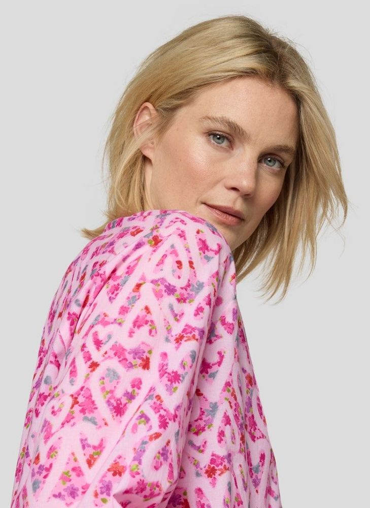 Dieses edle Blusen-Shirt mit rundem Ausschnitt sowie 3/4 langem Arm wurde in mehrfarbig mit Rose/Pink gemustert designt. Auch die dezente Raffung am runden Ausschnitt verleiht diesem Shirt einen besonderen Charme