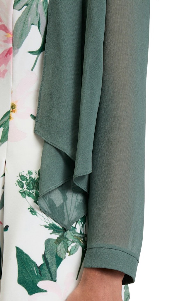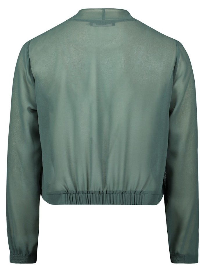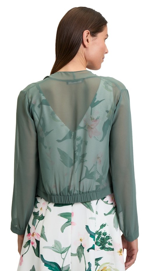 Dieses leicht transparente Jäckchen wurde in eycalyptus leaf als offene Varinante im Blouson Styl mit langen Ärmeln designt und rundet Ihren Auftritt auch zu den neuen Kleidern perfekt ab