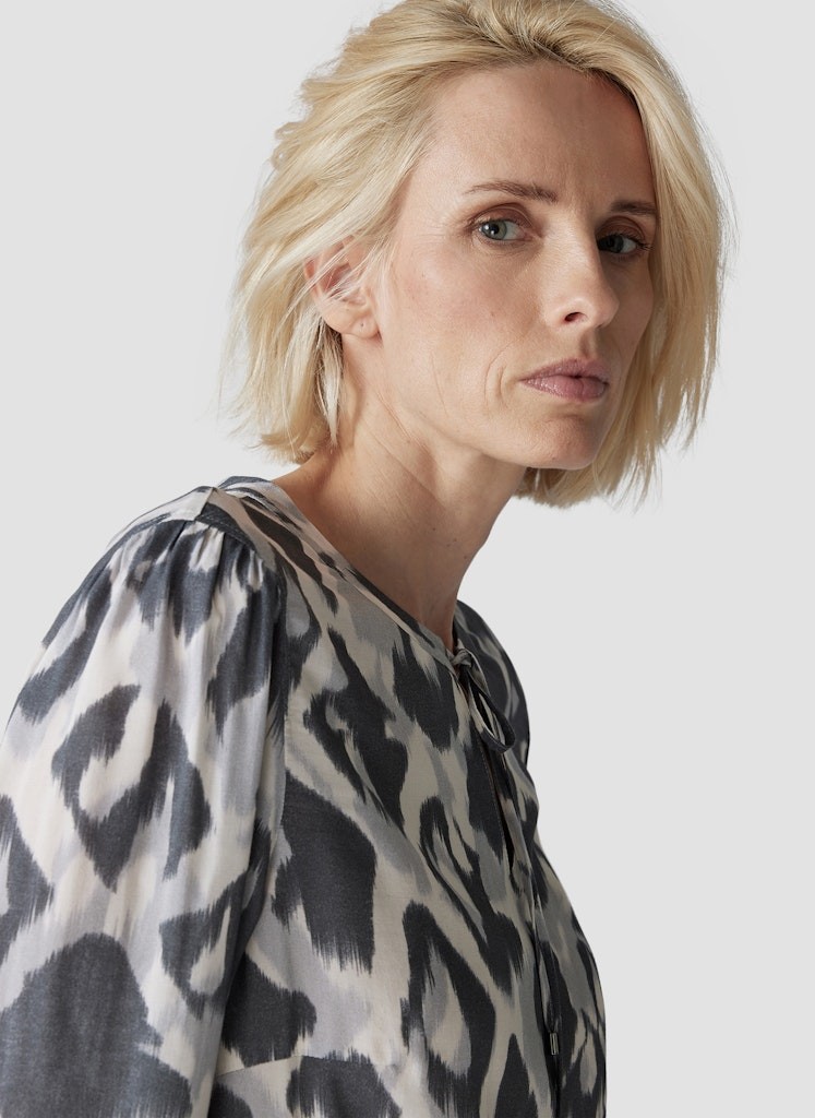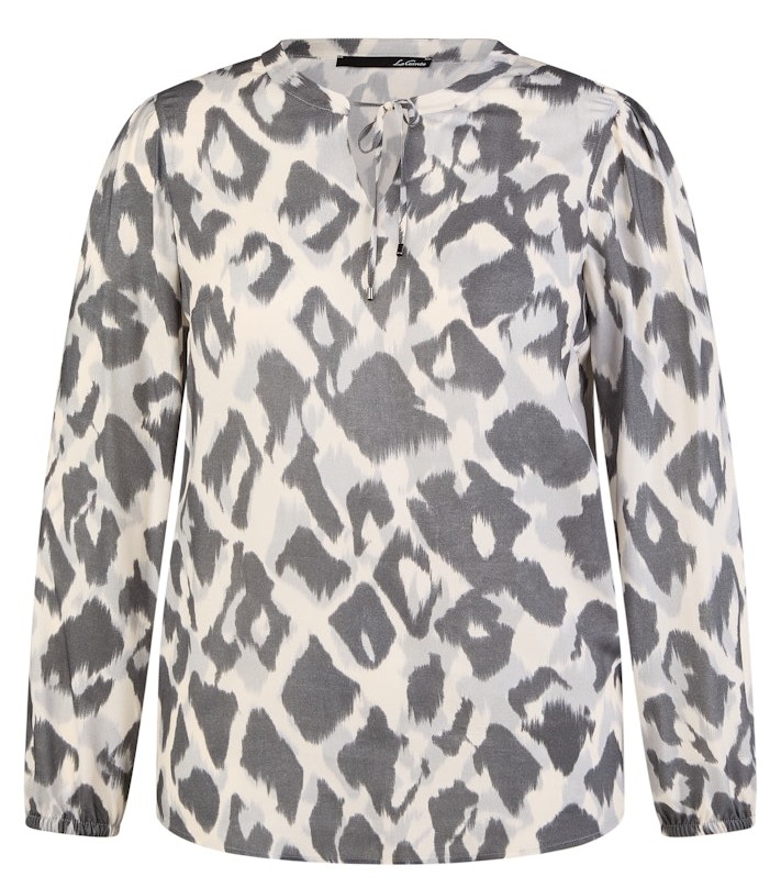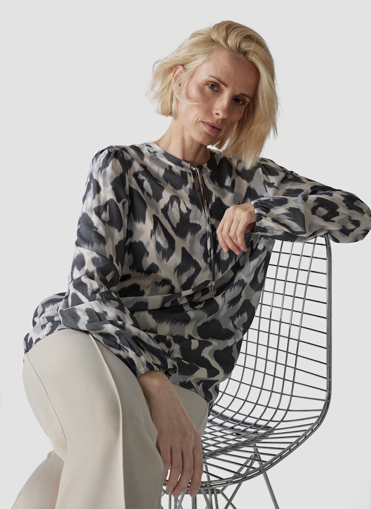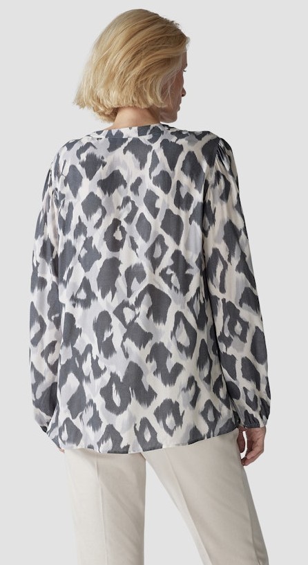 Diese Bluse begeistert mit ihrem trendigen Animalprint. Auch der elegante Rundhalsausschnitt mit dekorativer Schluppe macht dieses Modell mit den elastischen 1/1 Arm Ärmelabschlüssen zum Hingucker in grau-weiß