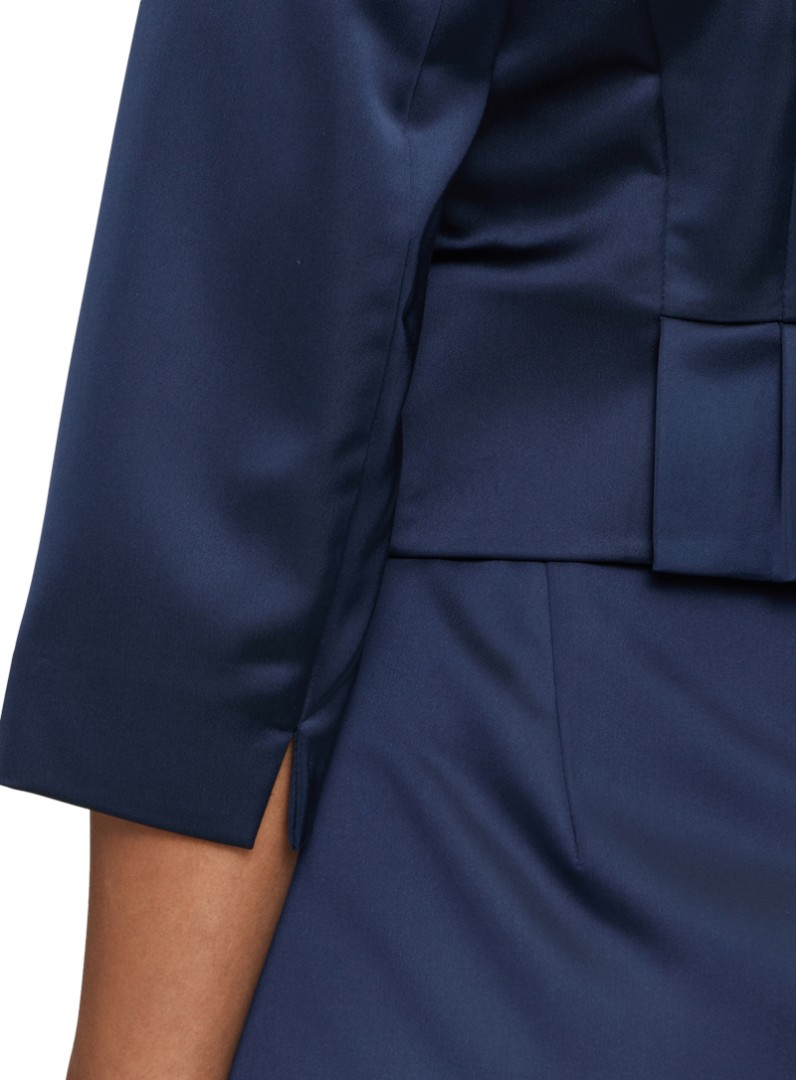 Die edle Bolero-Jacke mit 3/4 Arm in night sky ist die ideale Ergänzung für Ihren besonderen Anlass. Duch den Anteil von Elasthan machen Sie mit diesem leicht tailliertem Modell aus edlem Stretch-Satin immer eine gute Figur