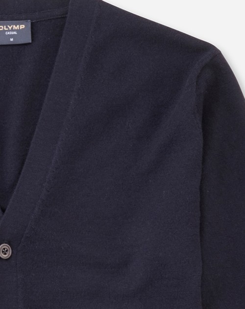 Eleganter Cusual Cardigan aus feinster Merinowolle. Ob business-like oder casual gestylt - diese Jacke zum durchknöpfen und mit V-Ausschnitt in marine blau lässt sich immer perfekt kombinieren