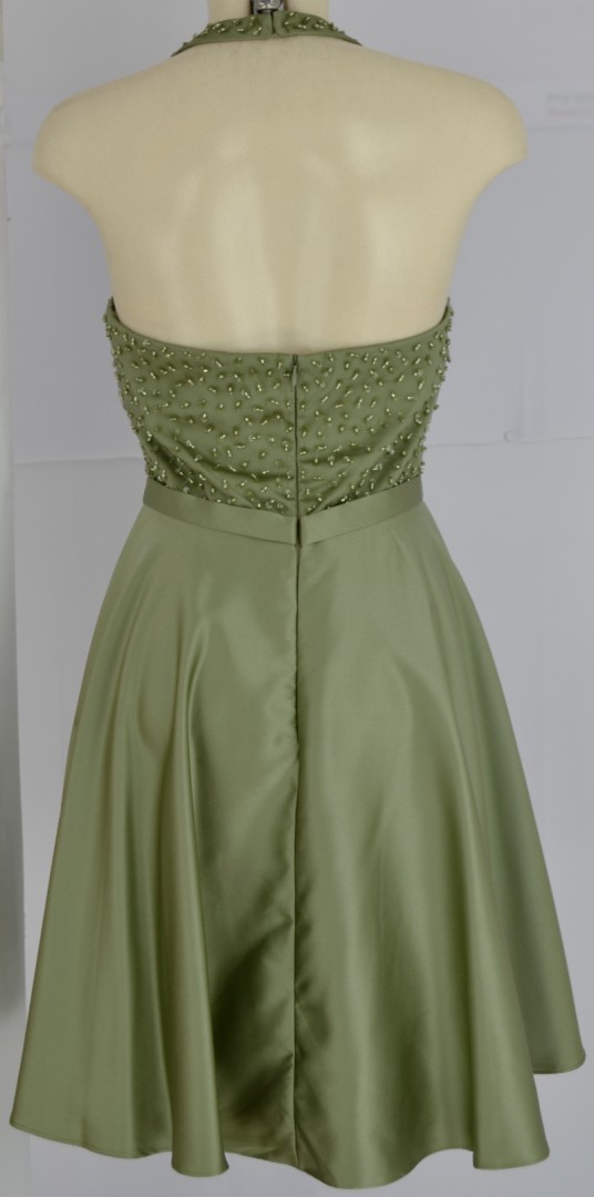 Bei diesem Cocktailkleid mit wattierten Cups wurden das Bustier mit Pailletten und Strass besetzt. Auch der leicht ausschwingende und in Falten gelegte Rockteil vermittelt hier einen zusätzlichen Charme