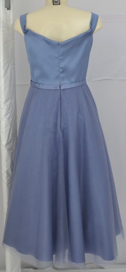 Das eher midi lange Cockailkleid in heritage blue wurde mit dezentem Glanz designt. Das Bustier mit wattierter Herzcorsage aus edlem Satin sowie der ausgestellte Rockteil mit Tüll Überwurf machen dieses Modell einfach perfekt für Ihren festlichen Auftritt
