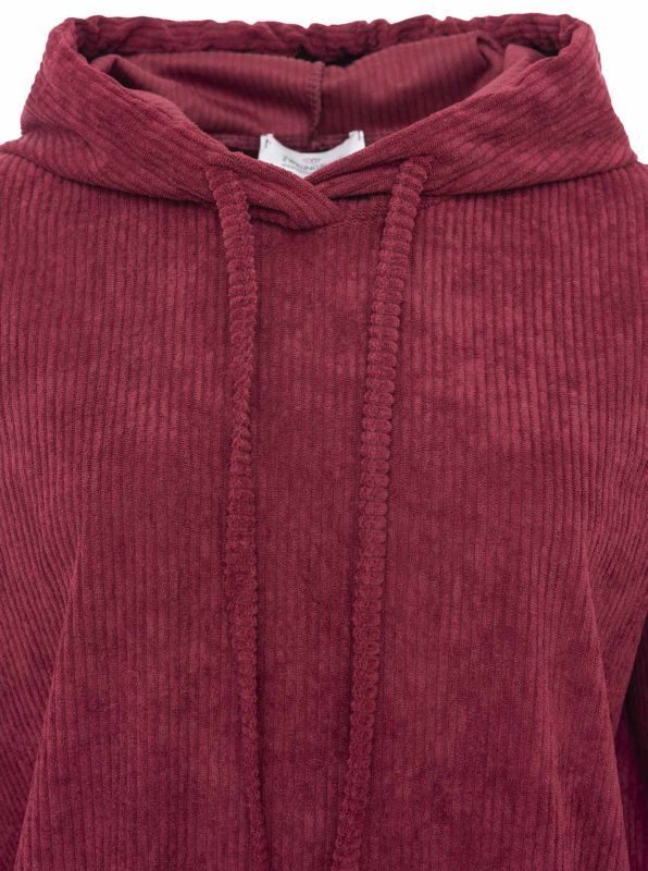 Dieser lässige Hoodie wurde aus Cord mit Kapuze und Bändchen sowie breiten Bündchen in uni bordeaux designt und ist immer prima zu kombinieren