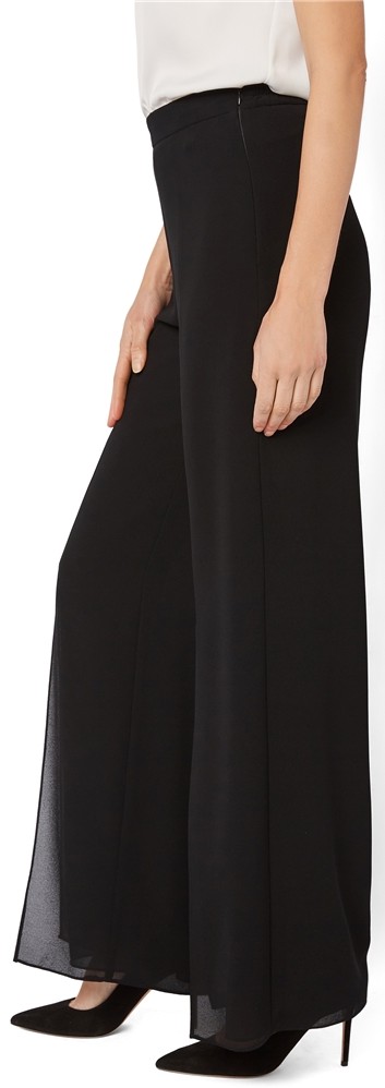 Diese hochwertige Palazzohose in schwarz wurde mit Überwurf gefertigt und ist aus feinem Chiffon sowie mit einer Fußweite von ca. 74 cm auch für die ganz besonderen Anlässe wie geschaffen