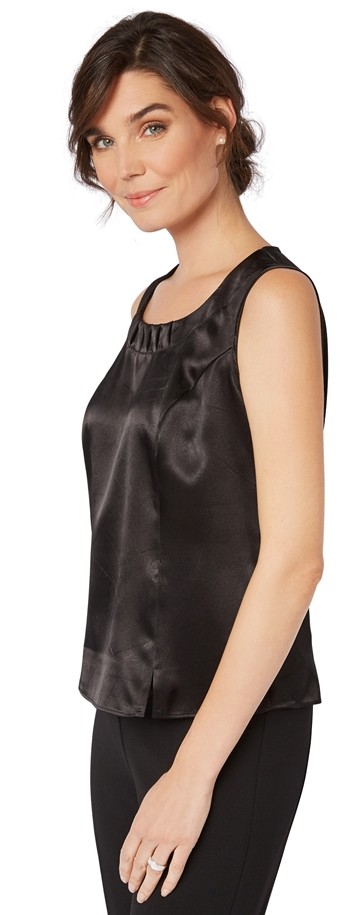 Dieses Top mit Wiener Nähten in chrash-Satin Qualität ist selbstverständlich knitterarm und zudem waschbar. Die modische Raffung am Ausschnitt verleiht diesem Modell in schwarz eine zusätzliche feminine Eleganz