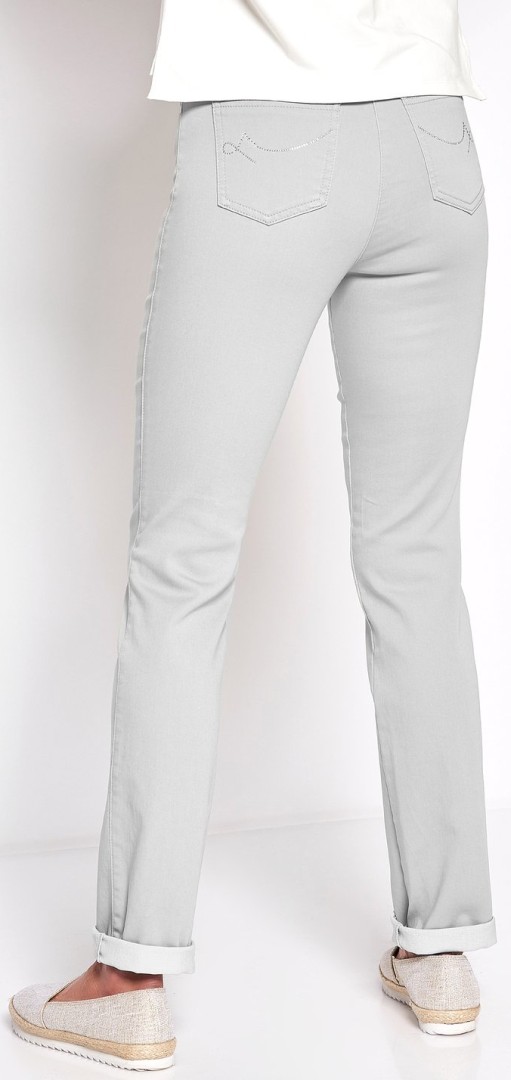 Diese etwas leichtere Baumwoll / Freizeithose mit Stretch wurde als "Meine beste Freundin" mit bequemer Passform - schmaleren Oberschenkeln - komfortabler Taille und etwas höherer Leibhöhe in silbergrau designt