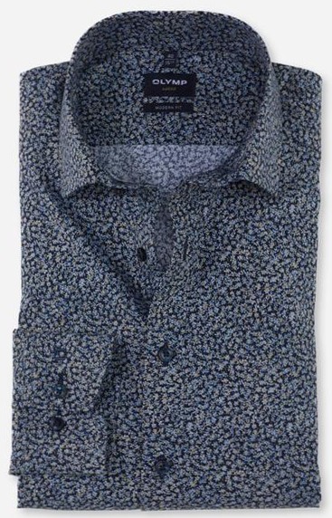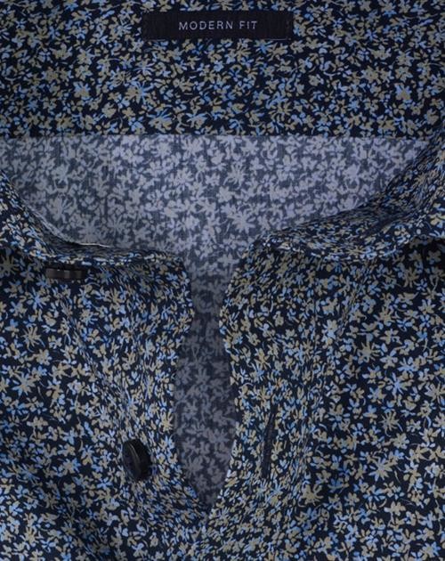 Ein smartes Minimal-Dessin auf Marine macht dieses Hemd zum Hingucker in modern fit also leicht tailliert geschnitten mit Global Kent Kragen sowie bügelfreier Variante