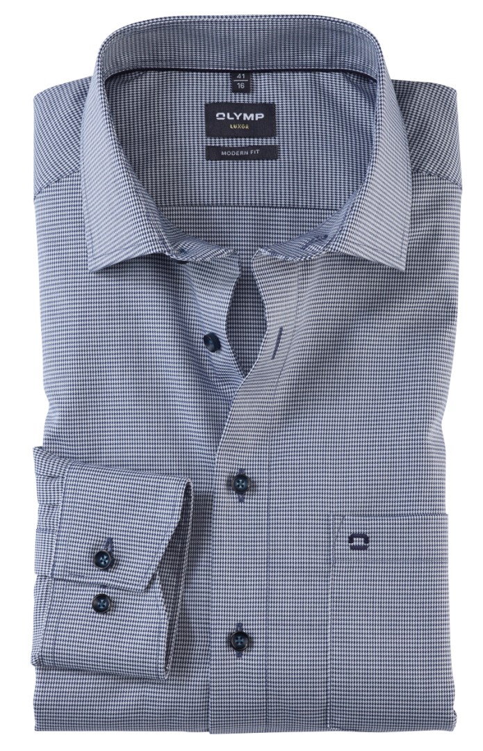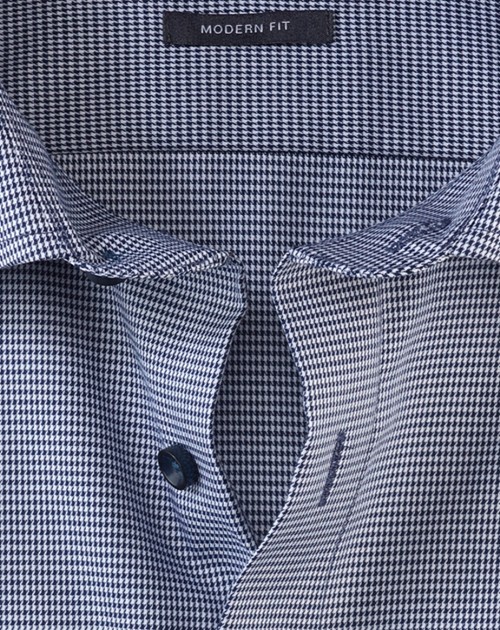 Das Hemd mit Faux-Uni-Textur begeistert durch die intensive Uni-Farbwirkung und bei näherem Hinsehen durch das besonders feine, leicht changierende Webmuster in blau. Kurz gesagt - Körperbetont, weltoffener Global Kent Kragen, bügelfrei und edel im Look