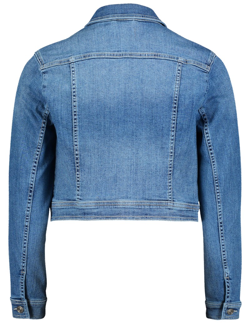 Diese top modische Jeansjacke mit leicht verkürzter Länge in blue denim lässt sich praktisch immer einfach selbst zu festlicher Kleidung kombinieren