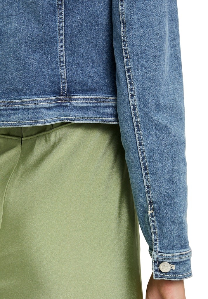 Diese top modische Jeansjacke mit leicht verkürzter Länge in denim lässt sich praktisch immer einfach selbst zu festlicher Kleidung kombinieren