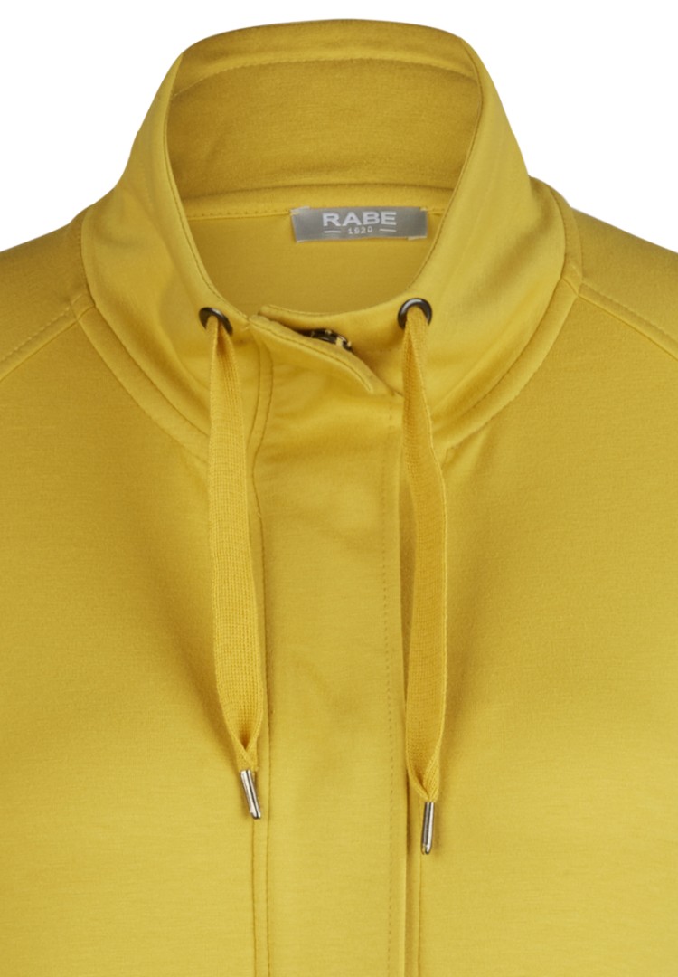 Diese top aktuelle Jersey Jacke mit leicht verkürzter Länge wurde in honig mit Schalkragen sowie verdeckten Druckknöpfen und aufgesetzten Taschen designt
