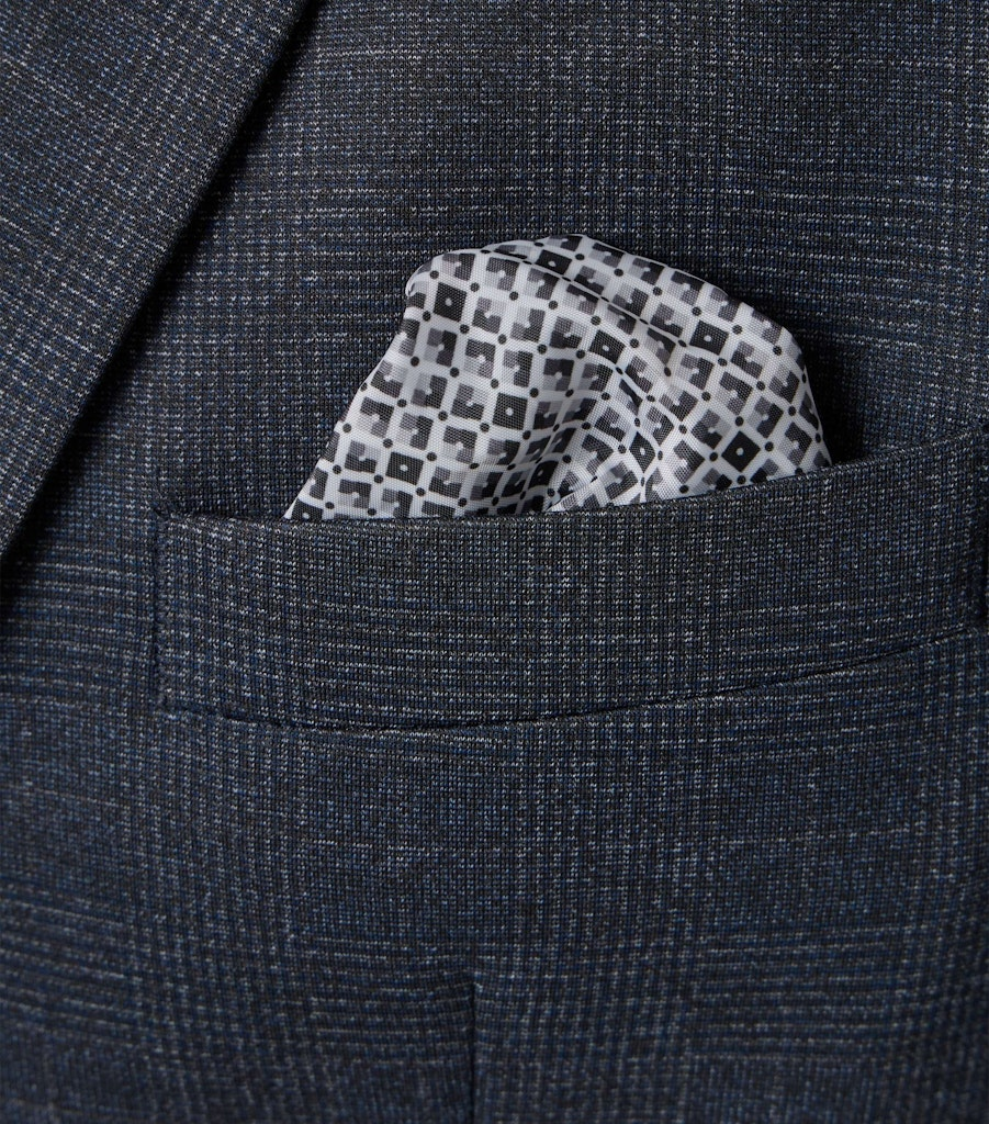 Dieses top aktuelle Sakko wurde in anthrazit-schwarz fein kariert designt. Als SLIM FIT Variante ist das Sakko mit Seitenschlitzen und modischem Einstecktuch tailliert und kann überaus vielseitig kombiniert werden