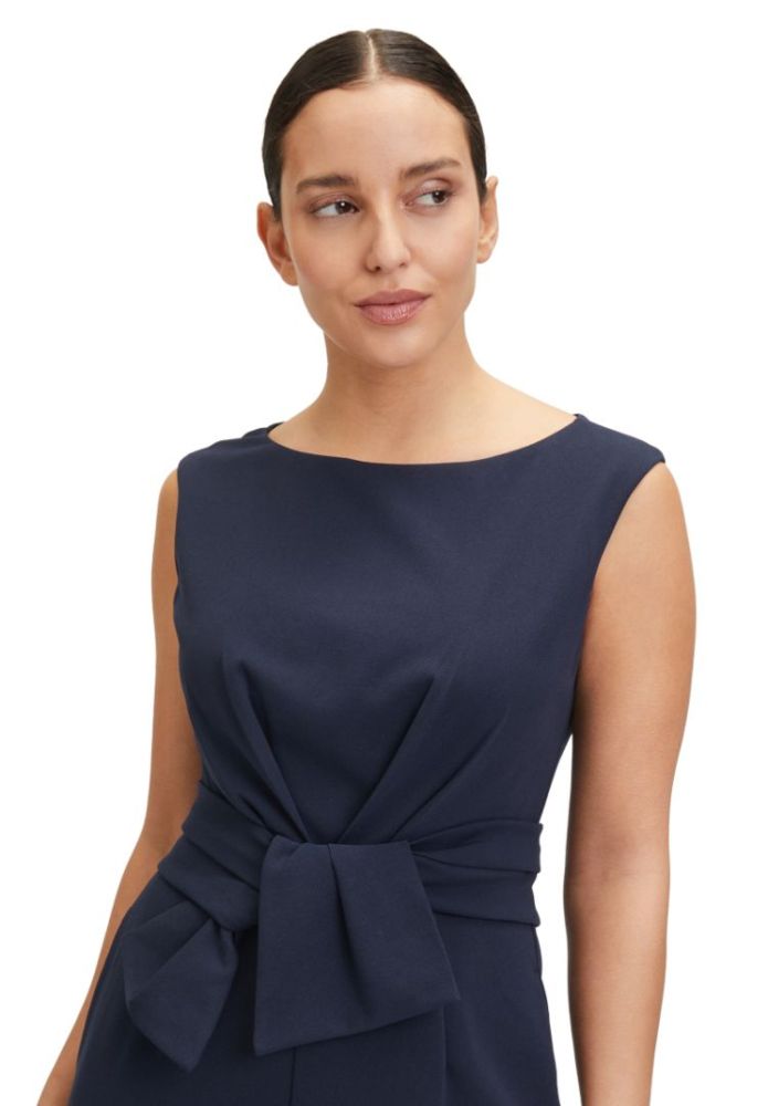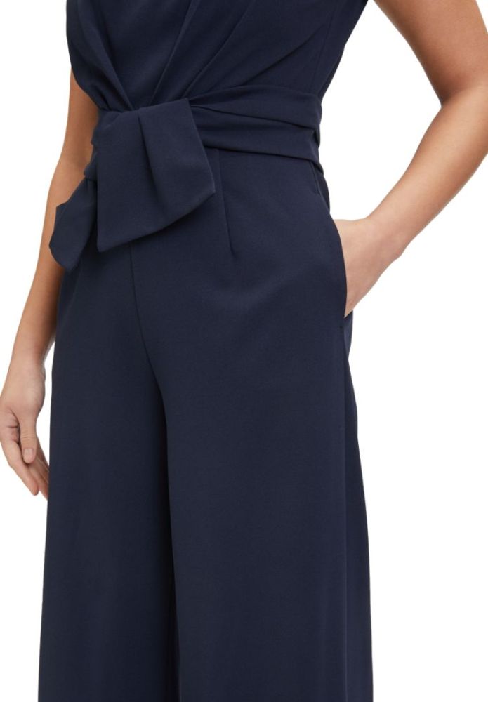 Dieser Overall mit U-Boot Ausschnitt ohne Arm in night sky wurde aus edlem Feinkrepp gefertigt. In maxi lang sowei mit den zwei seitlichen Taschen und der Schluppe vorne ist dieses Modell einfach perfekt auch für die besonderen Anlässe