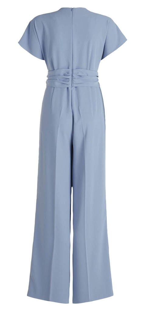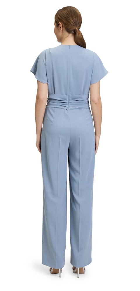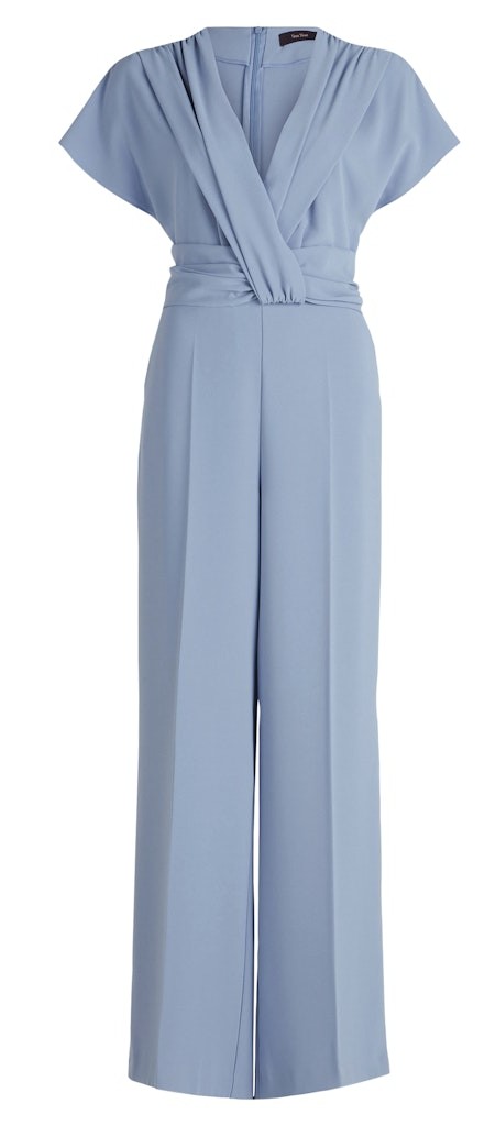 Dieser figurbetonte Overall mit überschnittenem Arm in light steel blue wurde aus edlem Feinkrepp gefertigt. In maxi lang sowei mit den zwei seitlichen Taschen und dem Taillenband aus Schluppe ist dieses Modell einfach perfekt auch für die ganz besonderen Anlässe