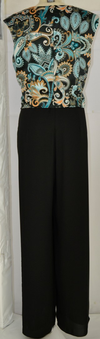Dieser Jumpsuit ist ein echter Hingucker in mehrfarbig petrol-safran-schwarz gemustert. Der Blouson Style sowie der dezente Glanz machen diesen Overall nicht nur für die besoneren Anlässe perfekt