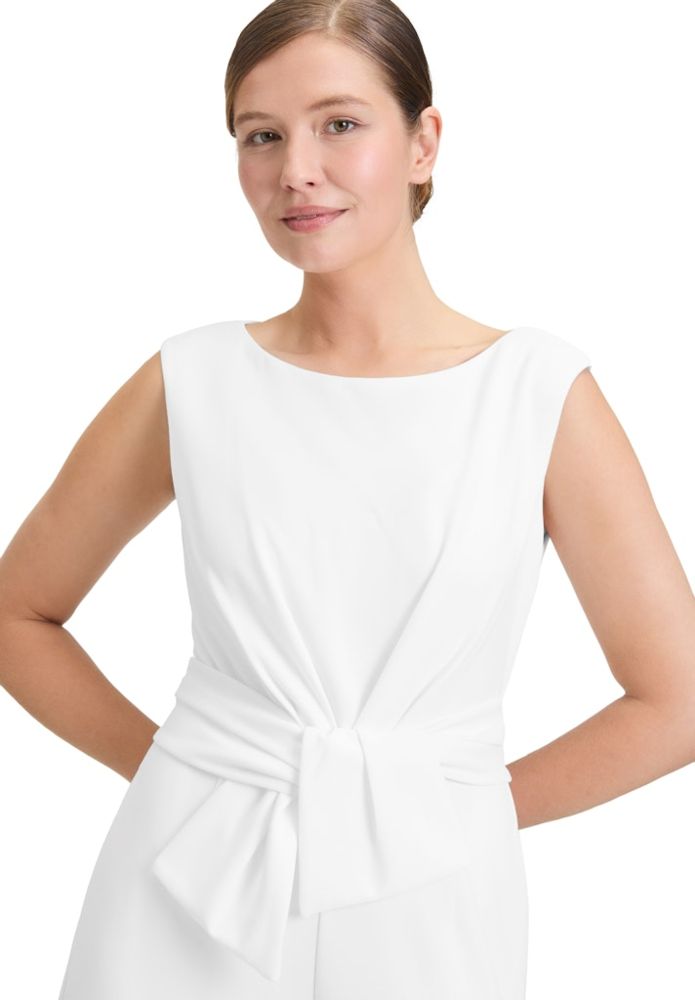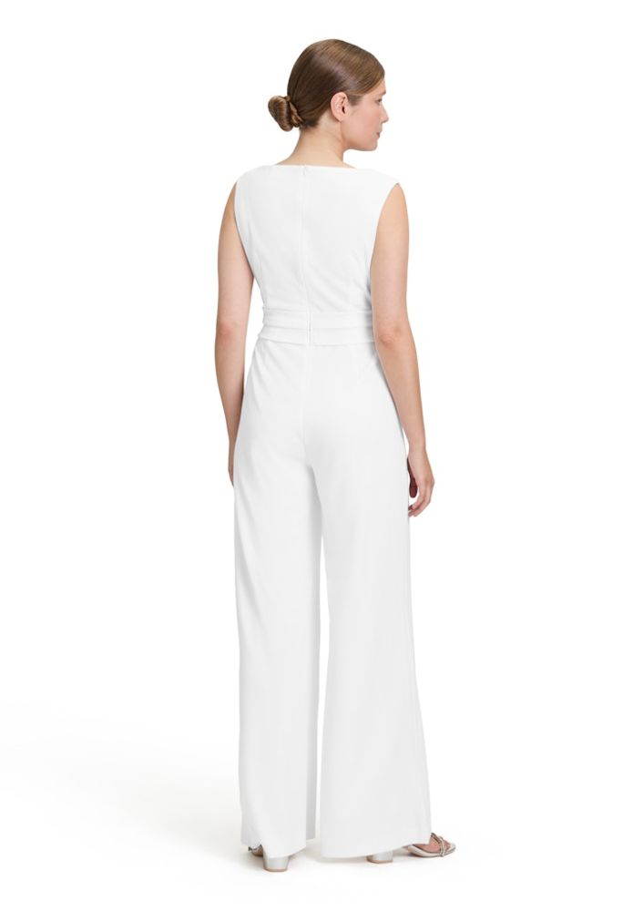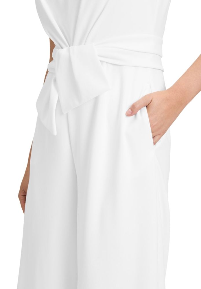 Dieser Overall mit U-Boot Ausschnitt ohne Arm in weiß wurde aus edlem Feinkrepp gefertigt. In maxi lang sowie mit den zwei seitlichen Taschen und der Schluppe vorne ist dieses Modell einfach perfekt auch für die besonderen Anlässe