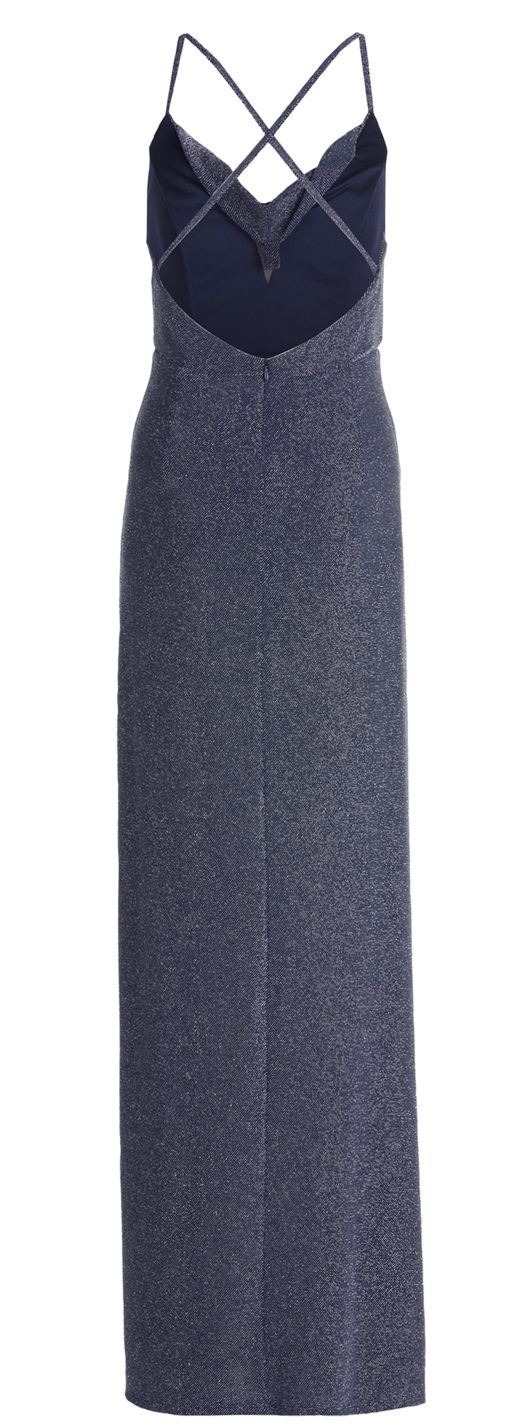 Dieses maxi lange Ballkleid wurde Allover mit Glanz in Blue Grey designt. Der dezente Wasserfallkragen sowie die seitliche Raffung machen das Modell zum echter Hingucker ohne Arm