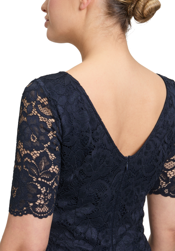 Dieses maxi lange Abendkleid mit 1/2 Arm von Vera Mont ist ein echter Hingucker. Mit viel Spitze am Oberteil sowie rundem Ausschnitt und dem schwingenden Rockteil aus feinen Chiffon ist dieses Modell in night sky einfach perfekt für Ihren festlichen Anlass