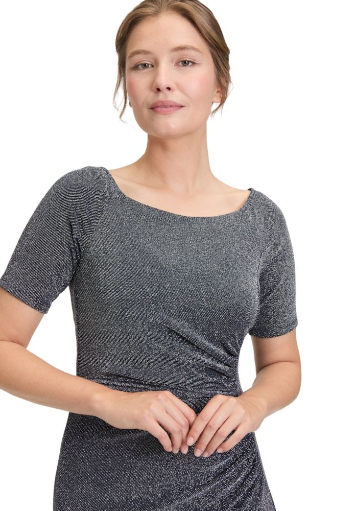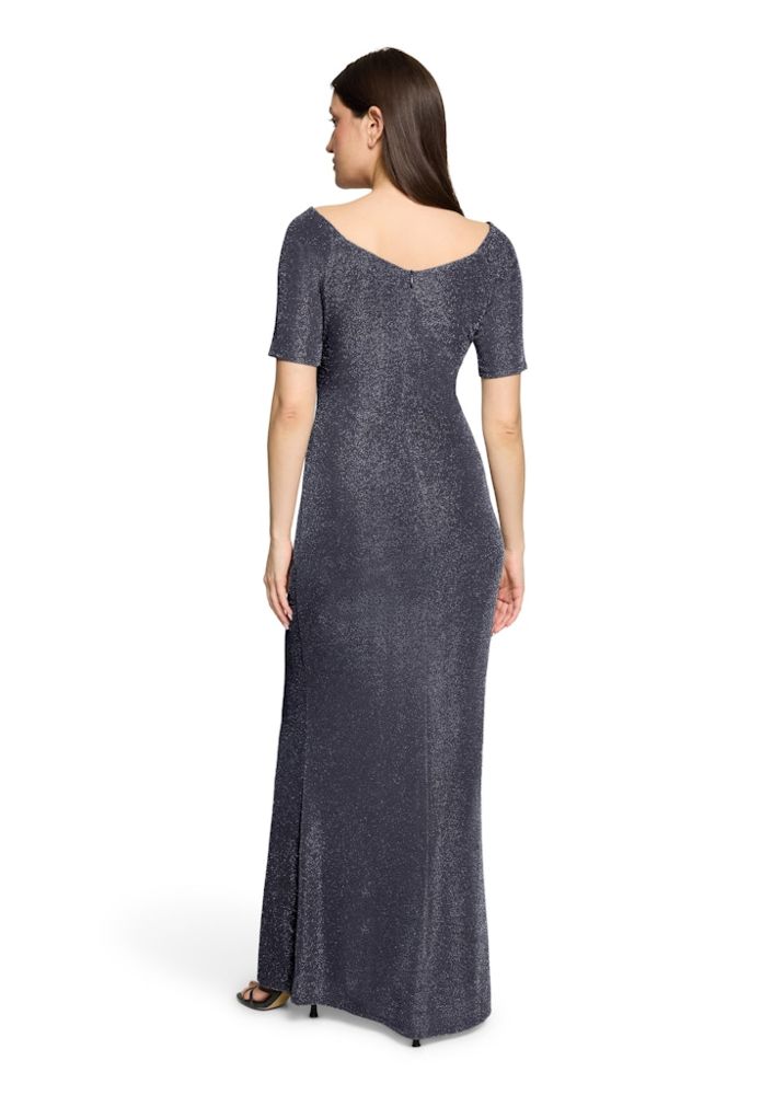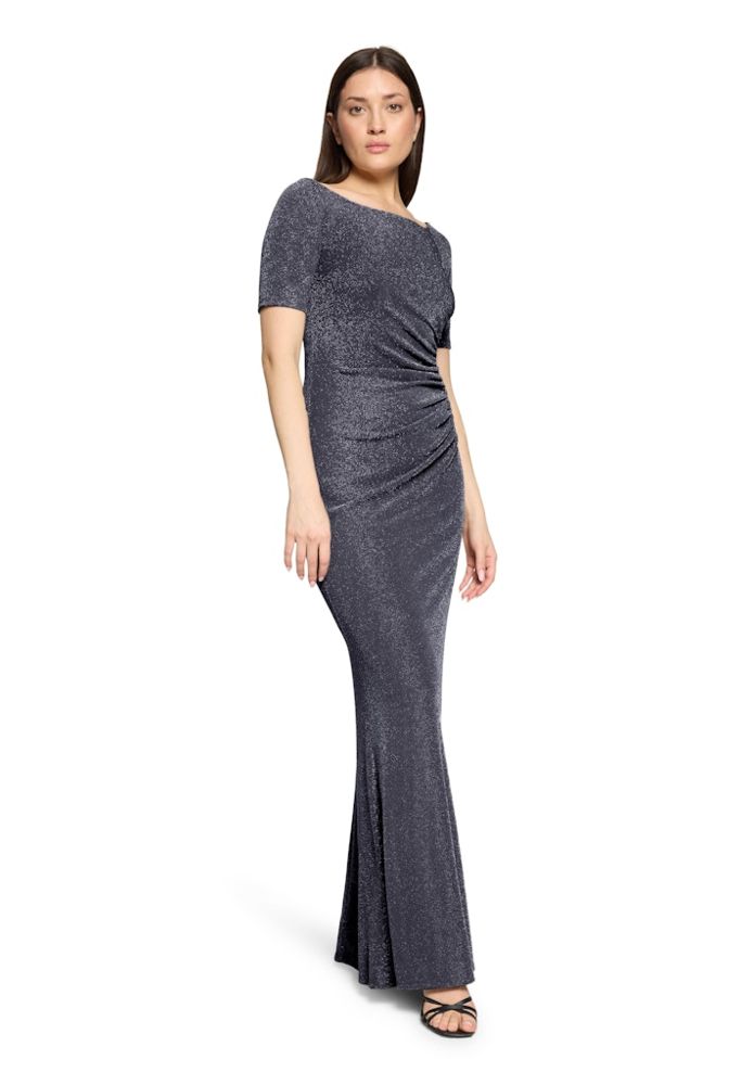 Dieses maxi lange Ballkleid wurde allover mit dezentem Glanz designt. In Dark Blue/Grey sowie mit 1/2 Arm und U-Boot Ausschnitt ist das Kleid perfekt für Ihren festlichen Auftritt. Die seitliche Raffung verleiht diesem Kleid mit Schlitz zudem immer eine gute Figur