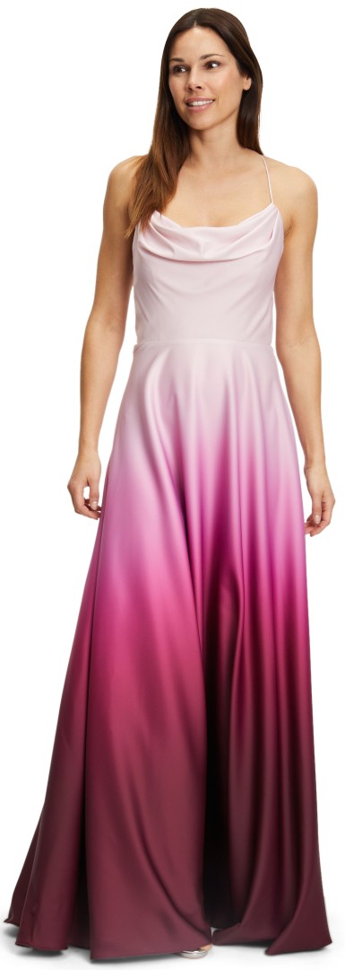 Das romantische maxi lange Ballkleid ohne Arm wurde mit Wasserfallausschnitt in Pink dark Pink sowie Farbverlauf designt. Aus leicht fließendem Satin mit dezentem Glanz ist das Modell mit Schnürung und R-V im Rücken einfach perfekt für Ihren besonderen Anlass